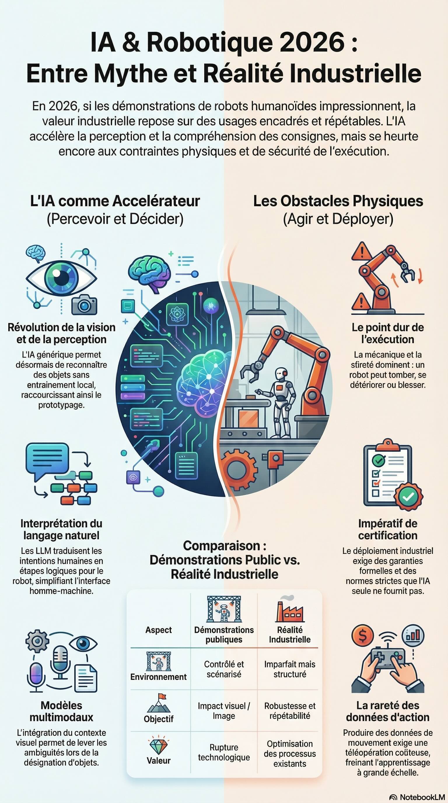 En 2026, le paradoxe est frappant : le "cerveau" et les "sens" du robot sont devenus ultra-performants grâce aux modèles de fondation, mais les "muscles" restent bridés par des impératifs de sécurité et de certification.