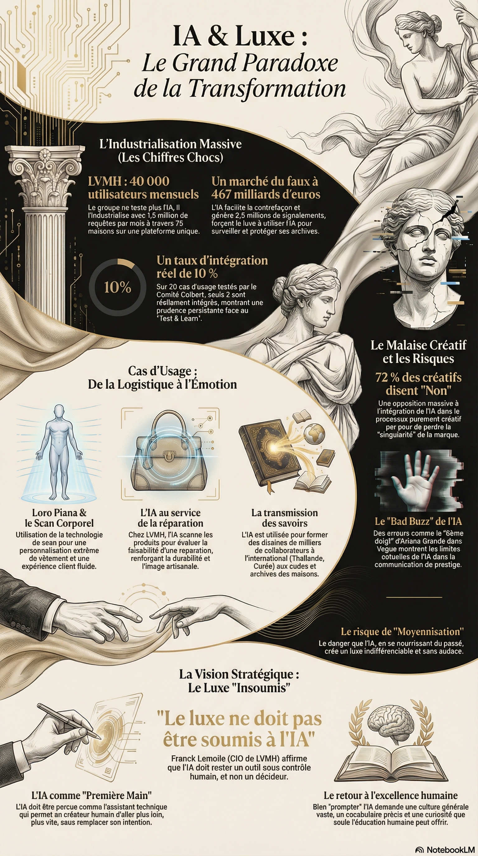 Comme le souligne Franck Le Moal, CIO de LVMH : « Le luxe ne doit pas être soumis à l’IA. » Cette volonté de maîtrise marque une distance nette avec les concurrents : là où d'autres subissent, LVMH instrumentalise l'IA pour asseoir sa supériorité opérationnelle tout en protégeant son identité.