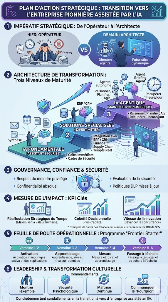 Semaines 1-2 (Activation) : Identifiez un projet pilote à fort enjeu (ex: clôture financière, réponse aux appels d'offres) et déployez les premiers assistants.