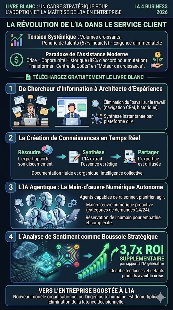 Pourtant, cette crise est le terreau d'une opportunité historique. 82 % des dirigeants s'accordent à dire qu'il est temps de repenser radicalement la stratégie et les opérations. Le défi n'est plus l'optimisation marginale, mais une mutation profonde : transformer un "centre de coûts" réactif en un véritable moteur de croissance. Dans ce nouveau paradigme, l’IA n'est plus un simple outil de productivité ; elle devient l’infrastructure même de l’empathie à l’échelle, redéfinissant le rôle de l’humain en tant que pivot de l'expérience.